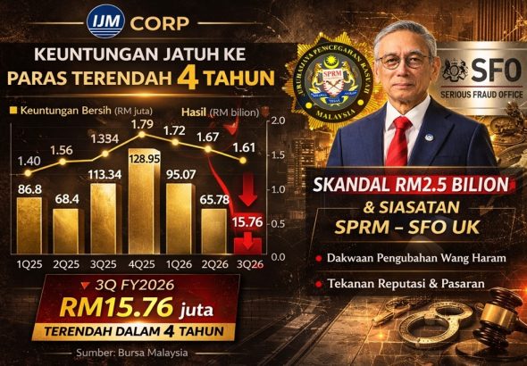 Prestasi IJM Corporation Bhd merosot apabila keuntungan suku tahunan menjunam 86.1% kepada RM15.76 juta di tengah tekanan...