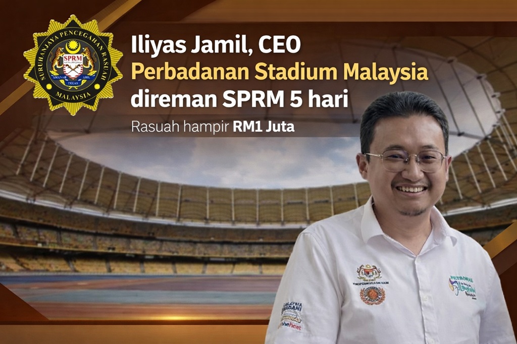 KUALA LUMPUR: Ketua Pegawai Eksekutif Perbadanan Stadium Malaysia, Iliyas Bin Jamil, direman selama lima hari sehingga 18 April selepas ditahan oleh Suruhanjaya Pencegahan Rasuah Malaysia (SPRM) atas dakwaan meminta dan menerima rasuah hampir RM1 juta.