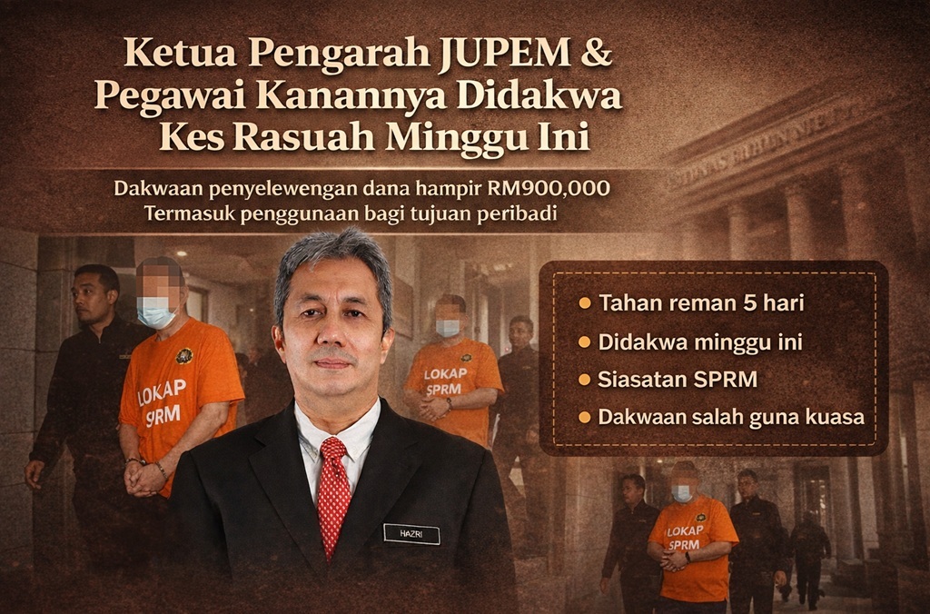 KUALA LUMPUR – Ketua Pengarah Jabatan Ukur dan Pemetaan Malaysia, Dato’ Lsr Hazri Hassan bersama seorang pegawai kanannya akan didakwa di mahkamah minggu ini berhubung penyelewengan dana kira-kira RM900,000.