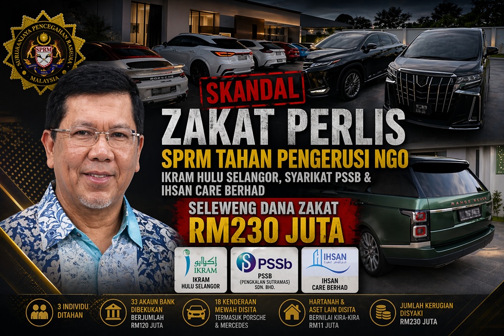 SPRM mesti membongkar misteri wang zakat lebih RM230 juta ini. Sitaan kereta mewah dan akaun menunjukkan mereka mencuri dana zakat ini dari kutipan 60 peratus dan juga 20 peratus yuran perkhidmatan melalui syarikat PSSB. Korek siapa lagi terlibat sehingga IKRAM Pusat atau mungkin ada pemimpin di belakang tabir.