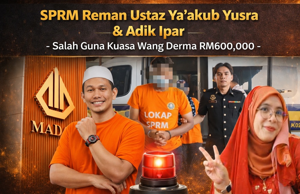 Ustaz Mohammad Ya’akub Yusra Mohd Yusof, yang dipercayai bertindak sebagai pengasas dan Pengarah Urusan, manakala wanita yang turut ditahan ialah Nurul Shakirah binti Rosli, seorang Pengurus Kewangan yang juga merupakan adik iparnya. Kedua-duanya, berusia dalam lingkungan 30-an, disyaki bersubahat meluluskan pembayaran berjumlah RM600,000 sebagai bayaran bagi kerja mengumpul dana untuk sebuah institusi pendidikan dan dakwah tanpa kelulusan rakan kongsi lain. Kes disiasat di bawah Seksyen 23 Akta SPRM 2009 berkaitan penyalahgunaan jawatan.